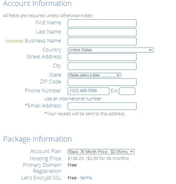 - Fill in your account information and your billing preference. The best value is the 36-month package and since your blog is a long-term investment, we recommend this option.