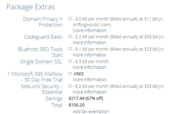 - We choose to uncheck all the package extras as most of these can be replaced by free WordPress plugins.